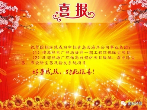 近日,青島國標環(huán)保有限公司鍋爐廢氣營銷團隊“梅開二度”——先后中標青島西海岸公用事業(yè)集團有限公司兩個熱力環(huán)保項目:(1)博源熱電廠熱源提升一期工程環(huán)保除塵項目;